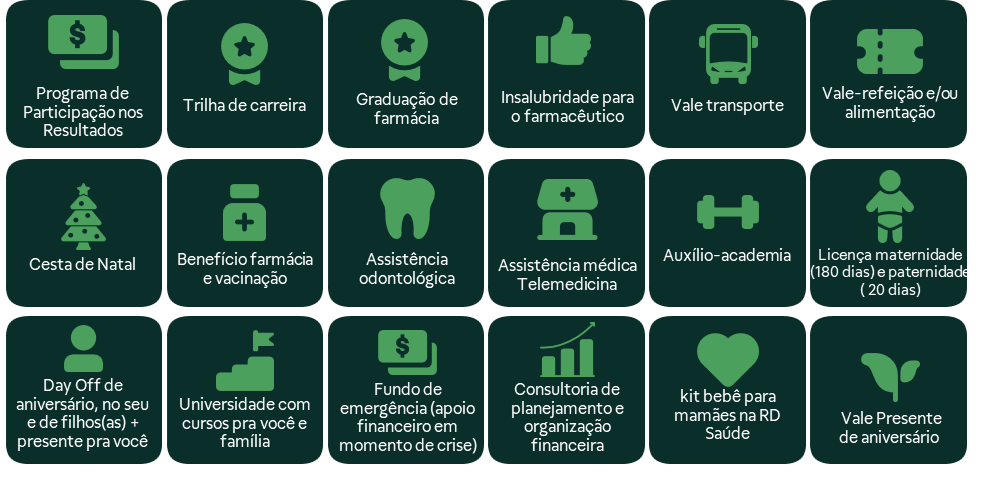 Trilha de carreira: 100% dos(as) gerentes da RD Saúde vieram de cargos de entrada e 50% são farmacêuticos(as). Demais, né? O melhor é que essa jornada da entrada até a liderança dura em média apenas 2 anos e 6 meses. Aqui, sua carreira e crescimento importam!